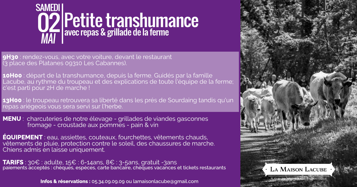 1:00 pm: the herd regains its freedom in the Sourdaing meadows, while an Ariège-style meal is served on the grass.