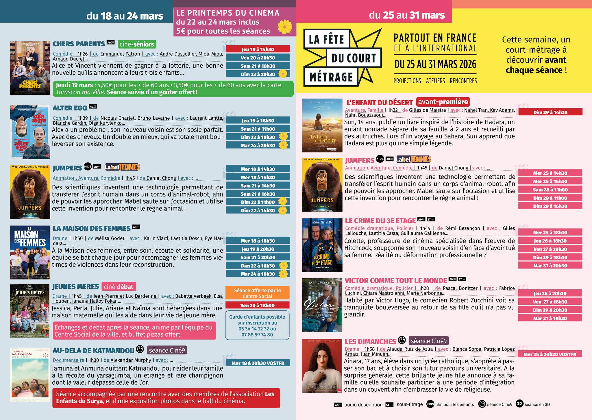 Program available in the building or on the town hall website: www.mairie-tarascon.com/cinema